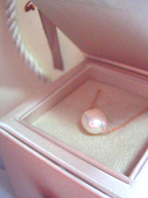 ちょっと大きめのパールに ピンクゴールドの繊細なチェーン。